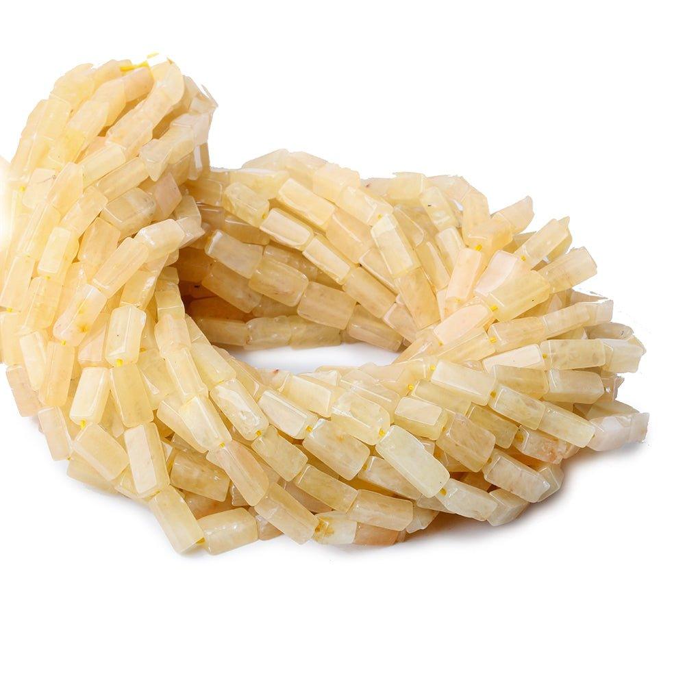 These pale yellow Aventurine beads measure approximately 8x4x4 and have about 34 beads on a 14 inch strand. The beads are cut a but uneven adding to the character to these hand cut polished rectangle beads.