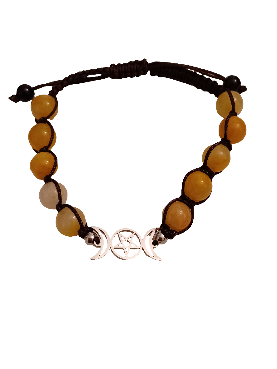 Amber Triple Moon Natural Stone Adjustable Bracelet