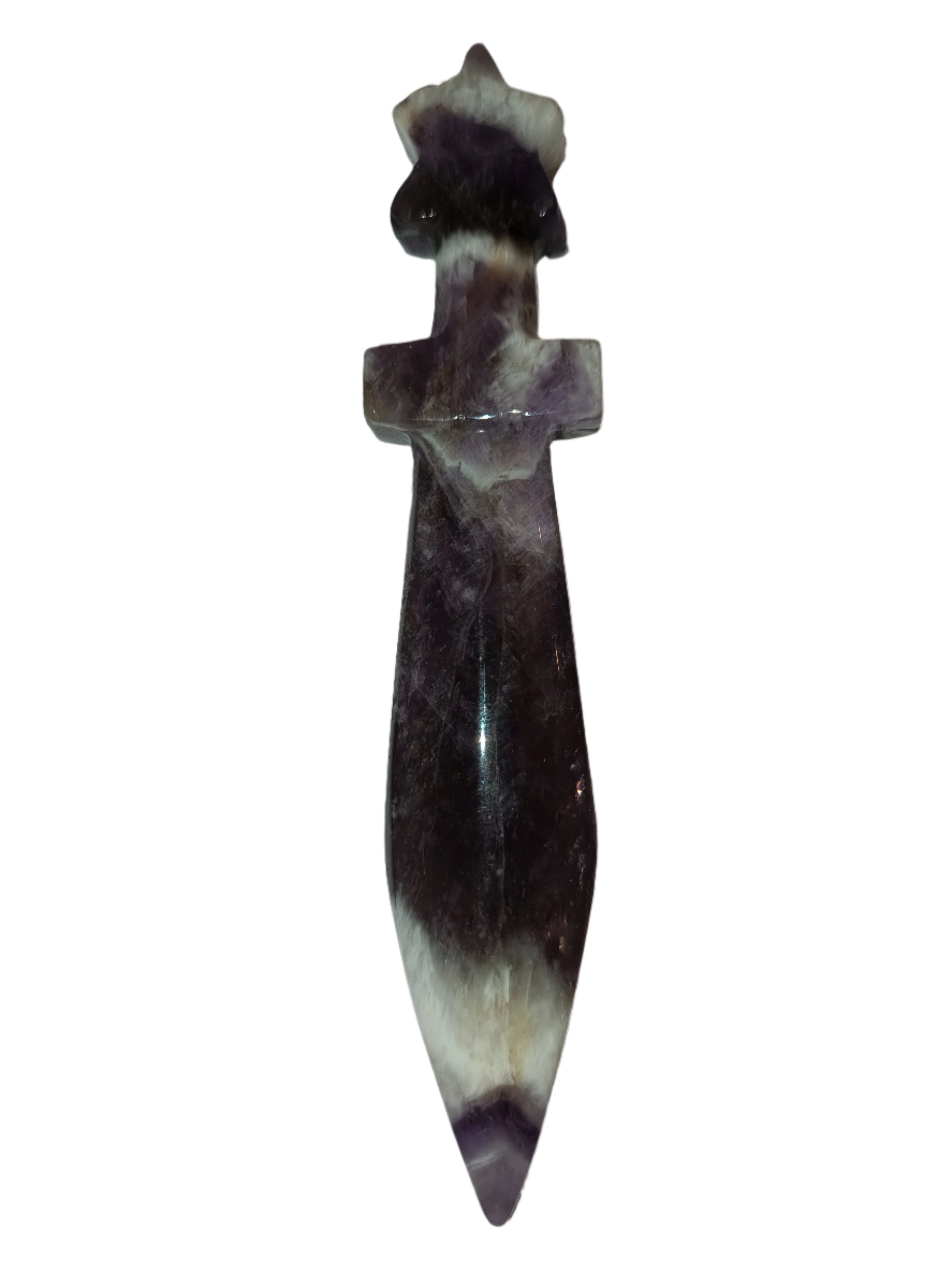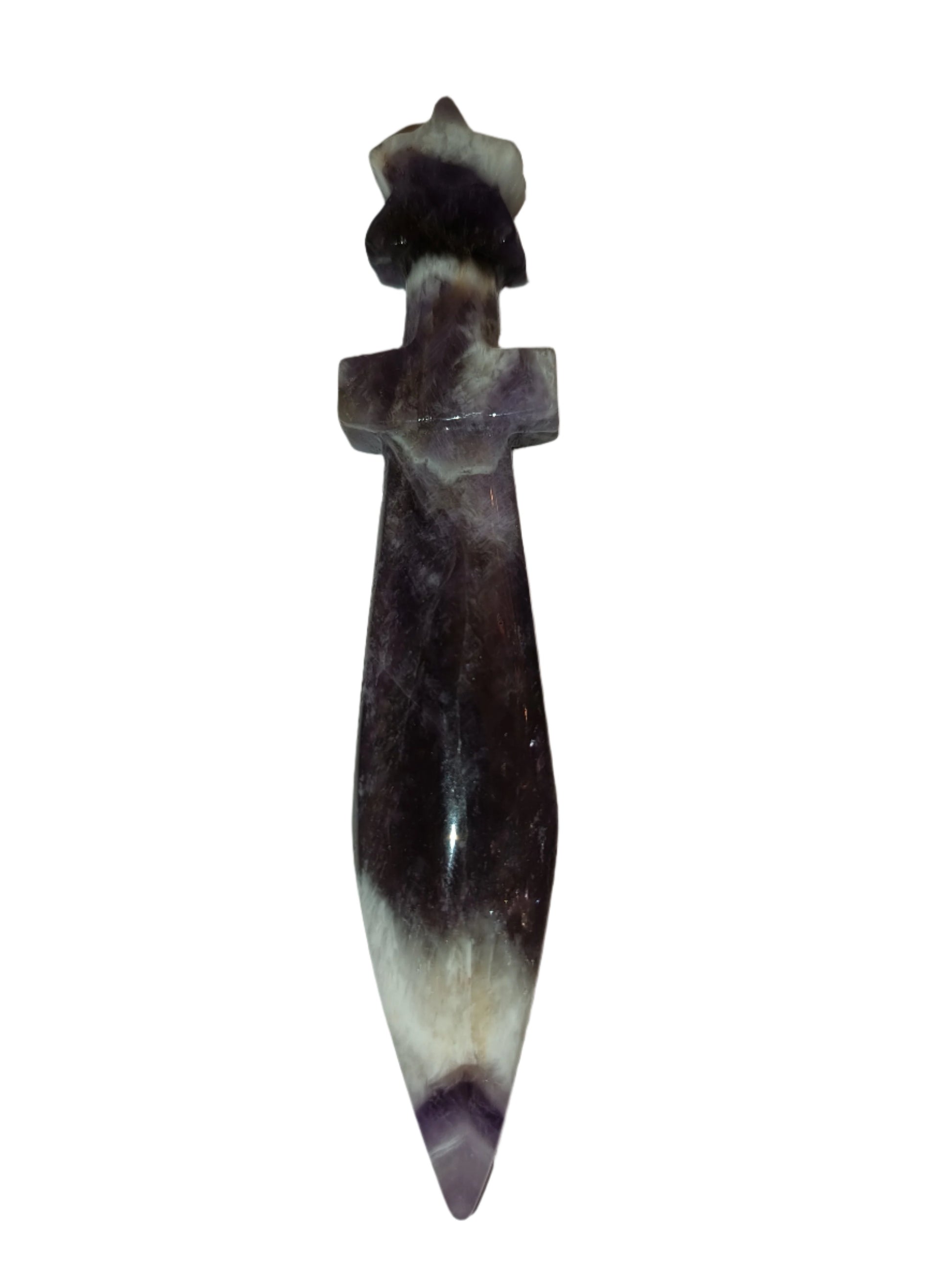 Discover the healing power of the Amethyst Athame. This stunning stone is believed to remove negative energy, promoting spiritual and emotional well-being. Keep it in your bedroom for restful sleep and in your home for harmony and unity. Trust in its positive energy force for improved overall health.