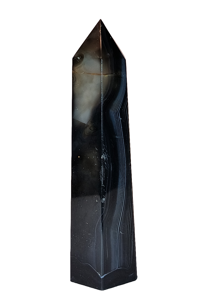 Intuitively ground yourself with our Black Agate Point. Its base chakra connection provides emotional and psychological grounding, unlocking inner thoughts and emotions. Experience deep calm and enhance intuition with its stabilizing properties. A must-have for recognizing harmful patterns and achieving inner peace.