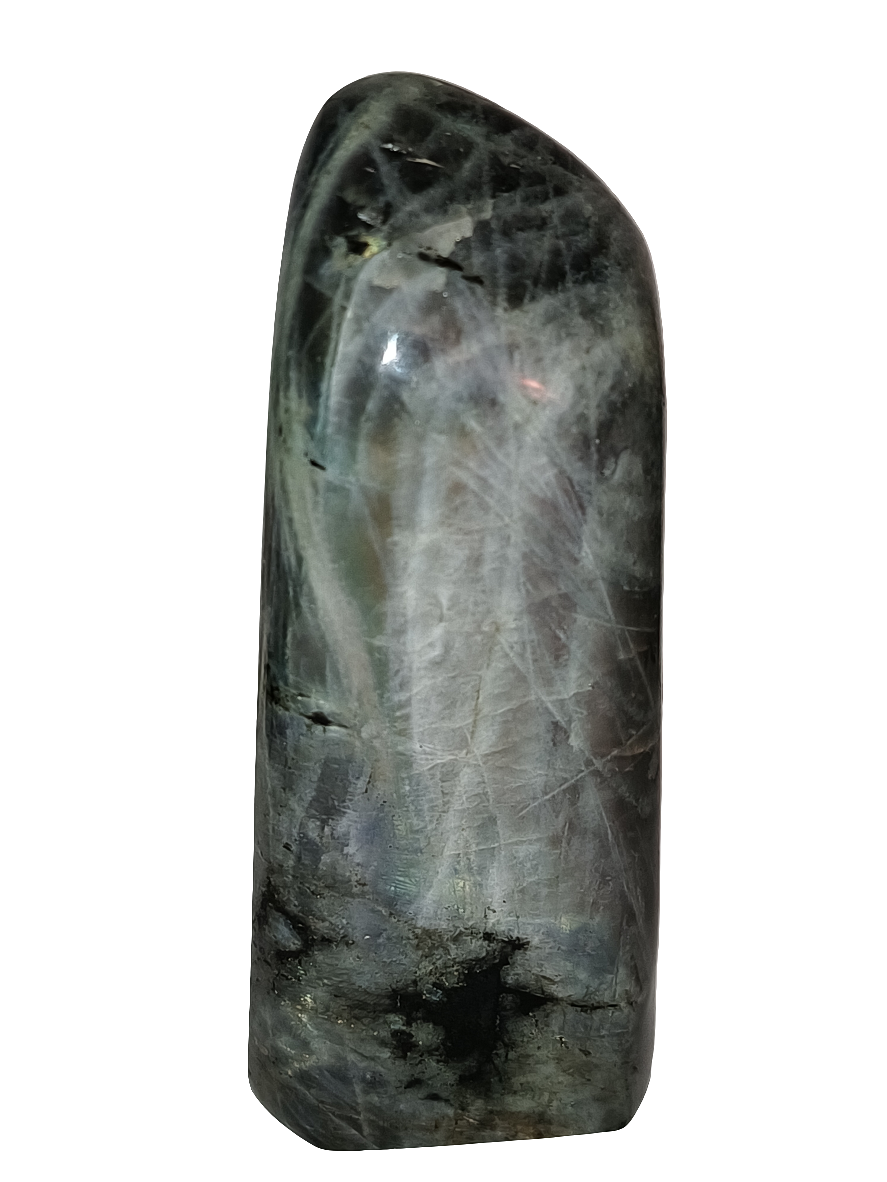 Unlock your inner potential with the Black Moonstone Tower. This calming stone relieves stress and promotes emotional healing. It's positive energy inspires creativity, cognitive thinking, and attracts success and abundance in all aspects of life. Use it on chakras to stimulate dreams and enhance psychic abilities.