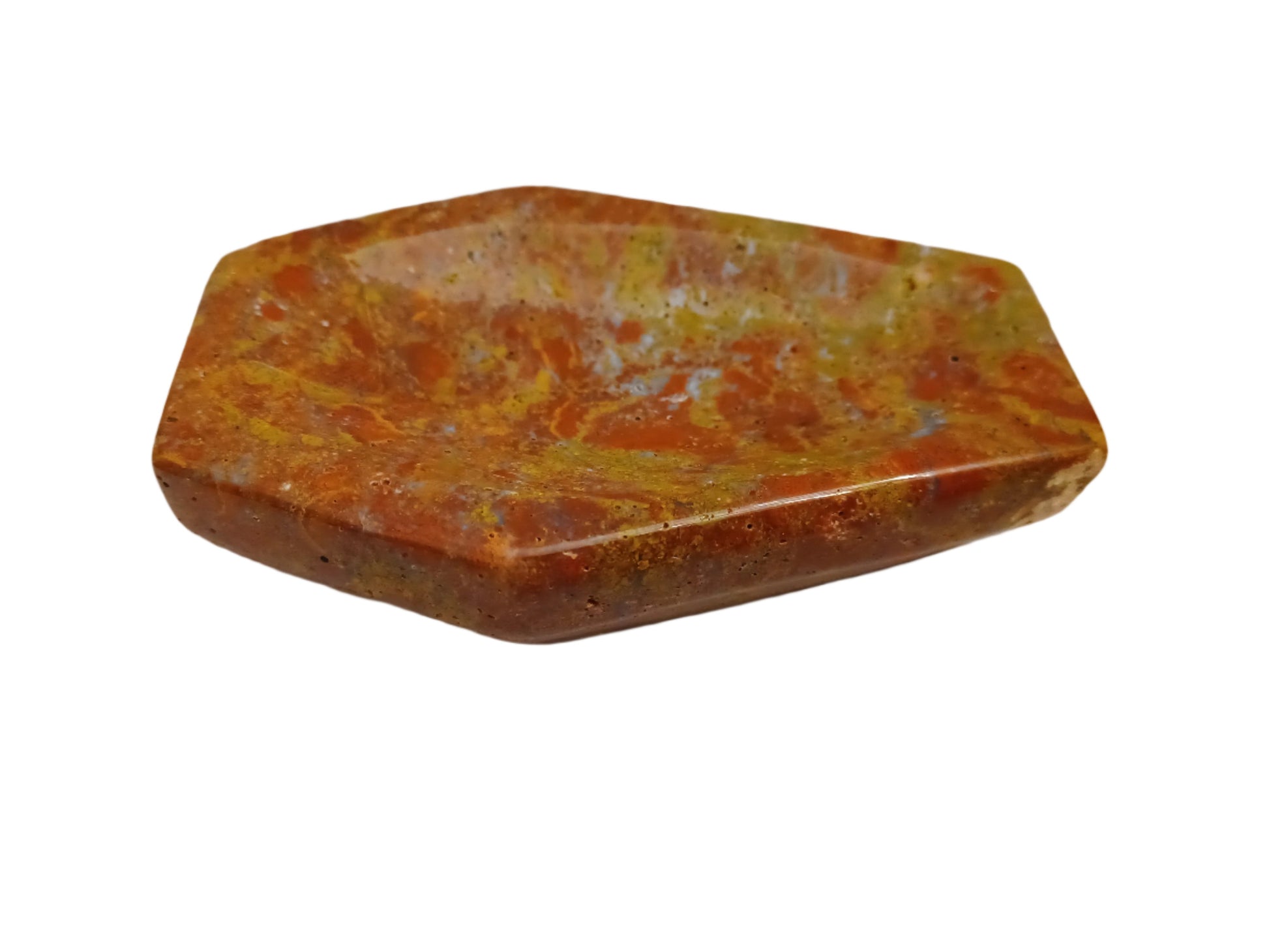 The Brecciated Jasper Coffin Bowl is a grounding stone that can improve focus and vitality. It works on the Root and Sacral chakras to increase strength and positive energy flow, while also removing negative energy. Perfect for overcoming feelings of shame and guilt from past experiences.
