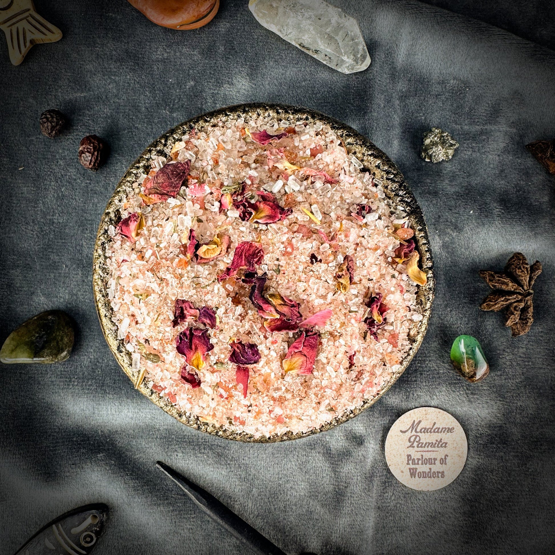 Madame Pamita’s Come to ME Bath Crystals contain the highest quality ingredients, the same all-natural ingredients that rootworkers used 100 years ago. The recipe includes all-natural sea salt, Epsom salts, organic or wildharvested herbs and botanicals, and organic essential oils.