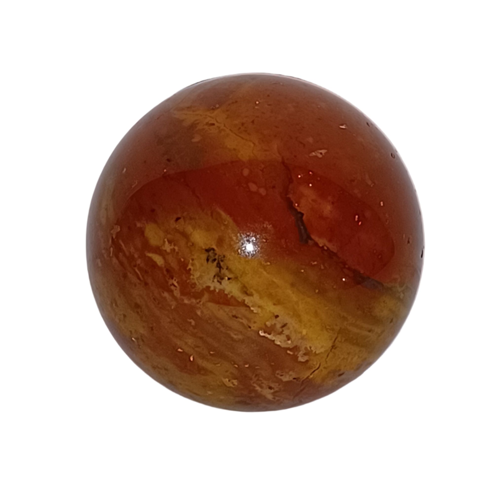 This Carnelian Agate Mini Sphere is an energizing healing stone known for balancing mind, body, and spirit. It helps remove negative energy and promotes the flow of positive energy, bringing comfort and peace to those going through emotional distress. It's considered a powerful stone for meditation too, restoring feelings of hope and enthusiasm.