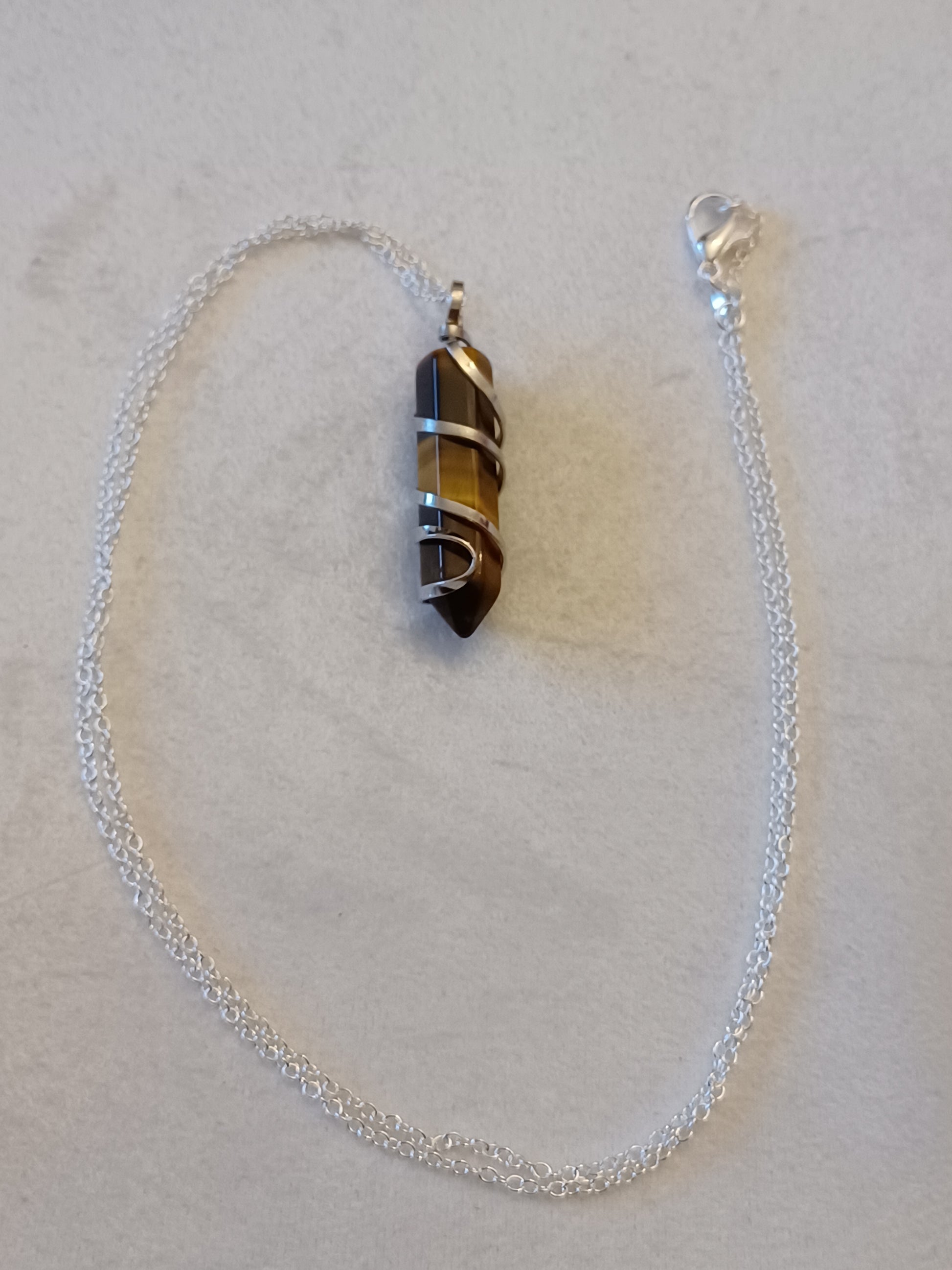 Tiger's Eye Bullet Silver Wrapped Necklace