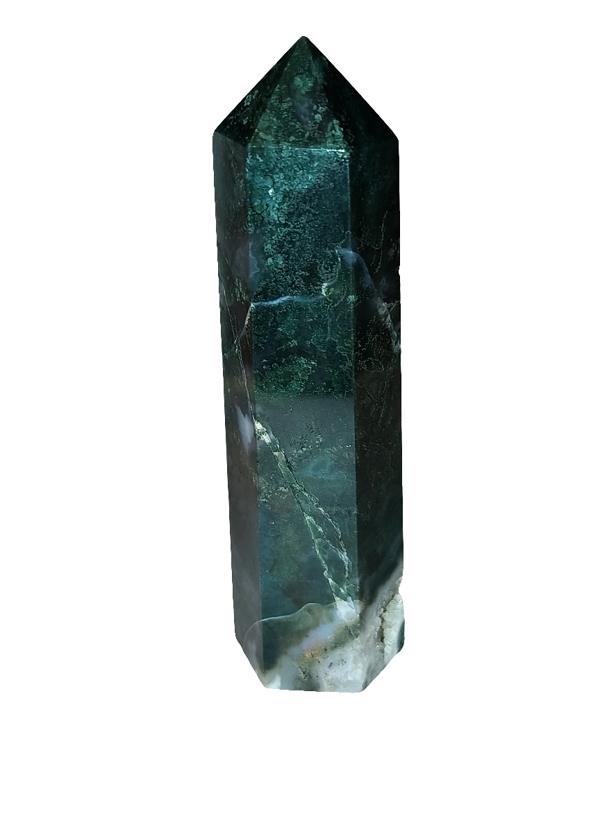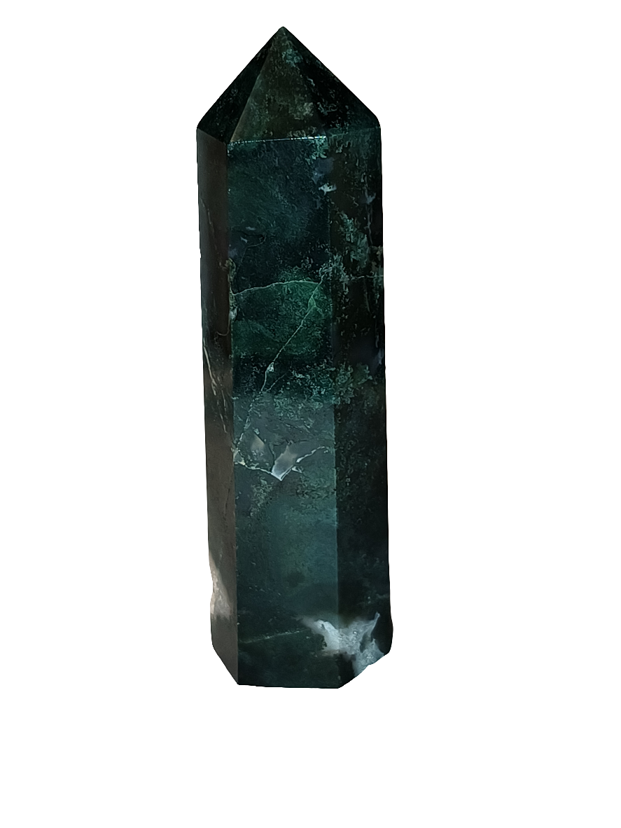 Experience the luxurious and healing qualities of our Green Moss Agate Point. This unique stone is known for its powerful anti-inflammatory properties, promoting circulation and boosting the immune system. Bound to increase confidence and self-esteem, and even bring wealth to its owner. A must-have for midwives, as it aids in pain reduction and healthy births.