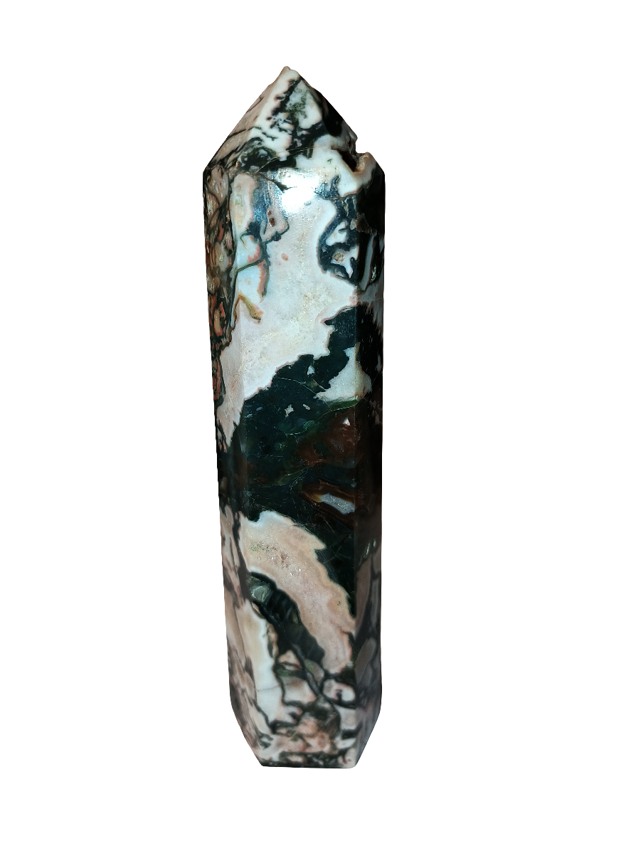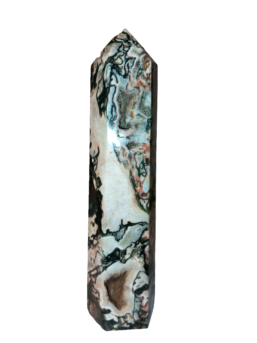 Elevate your spirits with Ocean Jasper Point. This powerful stone boosts optimism and vitality, while nurturing loving feelings and enhancing fertility, communication, and confidence. Its connection to the heart, throat, and solar plexus chakras brings renewed energy and positivity. Discover the benefits of this amazing stone today!