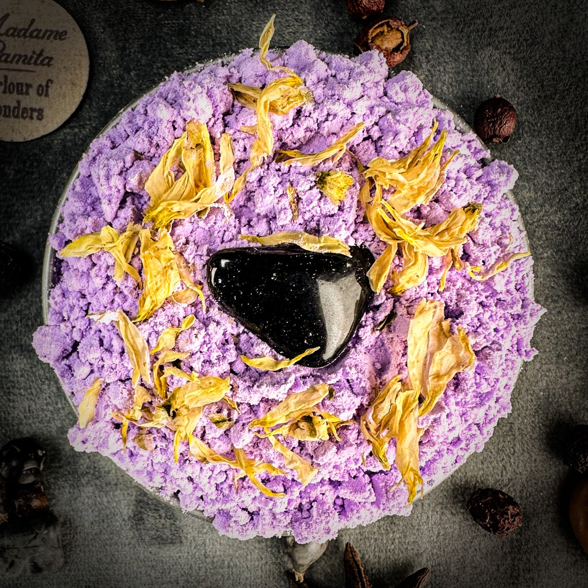 Each generous tin comes with a lucky Black Tourmaline gemstone. Leave the gemstone in the tin until all the product is used, then place it on your altar or carry it in a mojo bag.