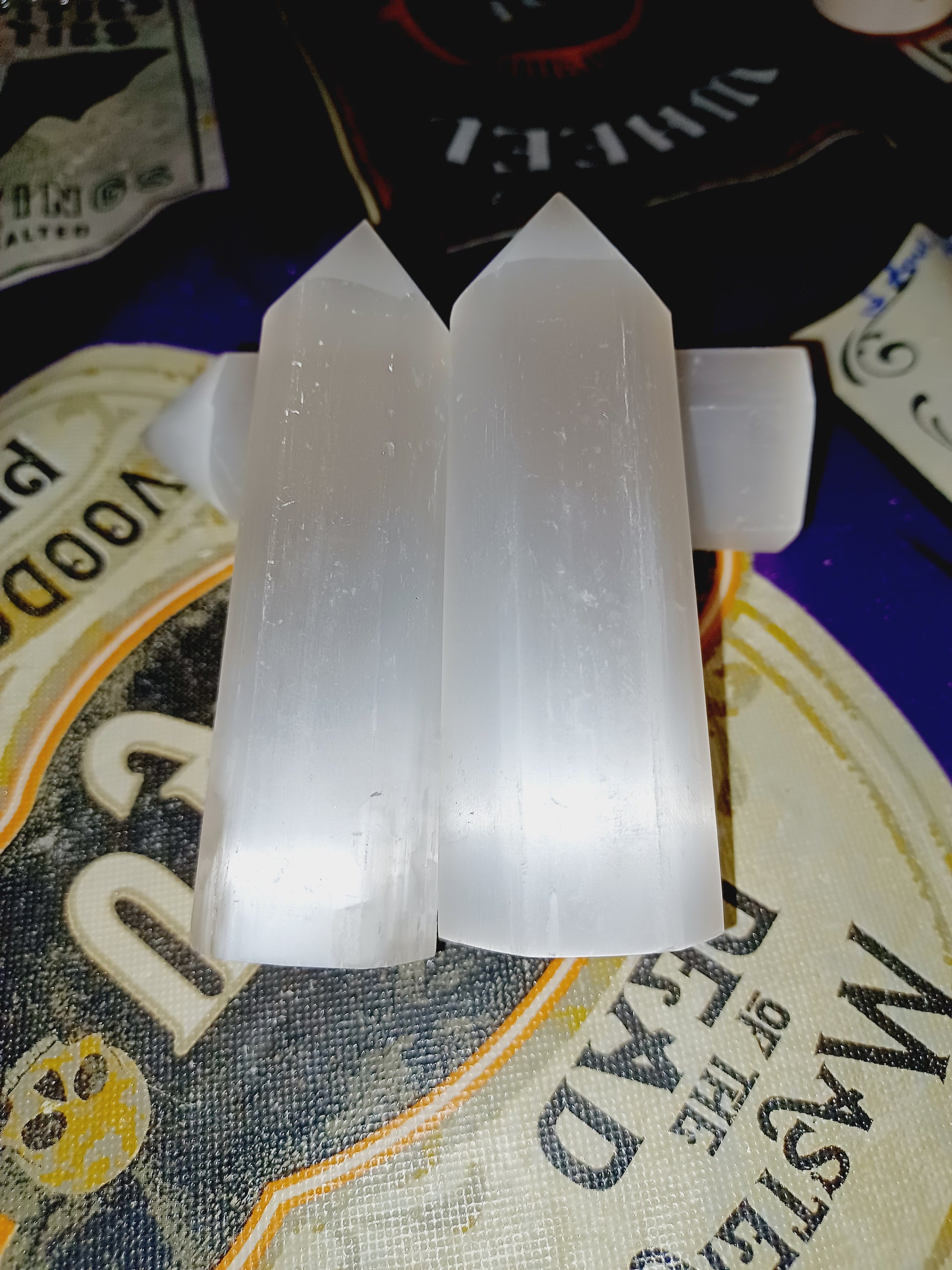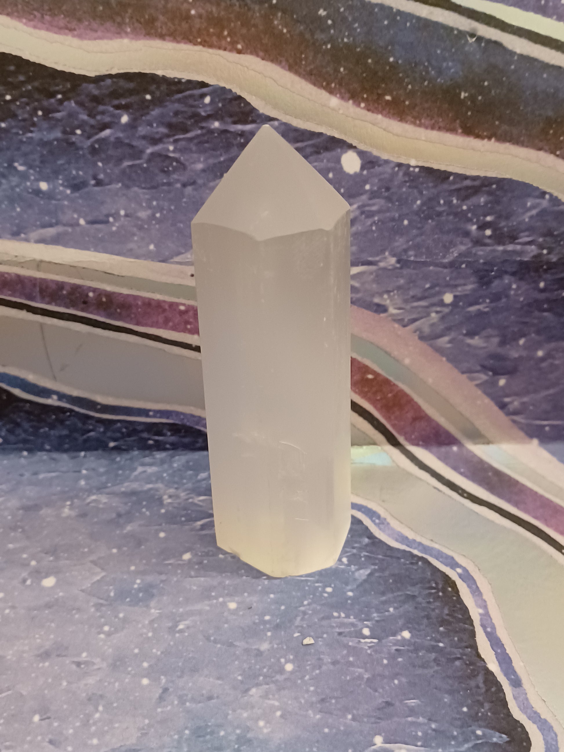 Selenite Point is a quartz that is believed to have high-vibration properties to open your higher chakras, like the Crown and Third Eye. It can also be used to cleanse other crystals, as well as bring light, calm, and clarity to shift stagnant or negative energies. Make Selenite Point part of your spiritual journey.
